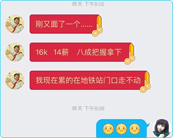 姓名:冯*阳 毕业院校:大连东软信息 专业:电子商务 薪资:12000 公司:北京**信息科技有限公司 福利:五险一金